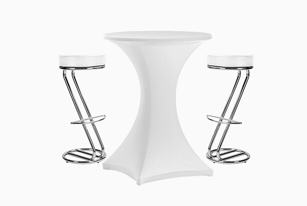 Er besteht aus einem Chrom-Gestell in der typischen Z-Form und einem bequemen weißen Sitzpolster. Mit diesem Barhocker mieten Sie eine sowohl bequeme als auch funktionale Sitzgelegenheit für Bars und Tresen auf Ihrer Veranstaltung. Mit seiner Höhe von 82 cm bietet der Barhocker die optimale Sitzhöhe für Bars und High-Tables. Zudem ist er ein Raumsparwunder, denn sein Durchmesser beträgt nur 37 cm.