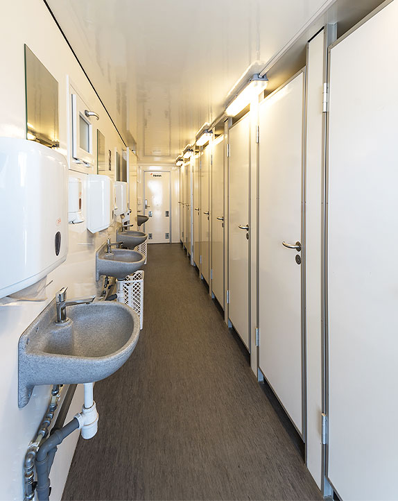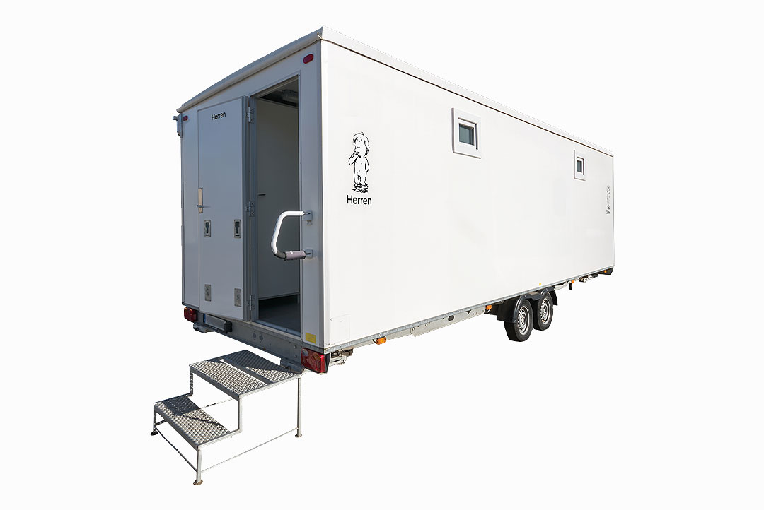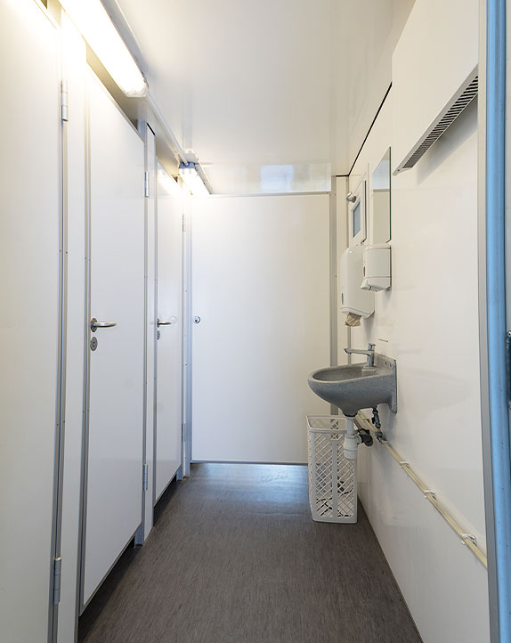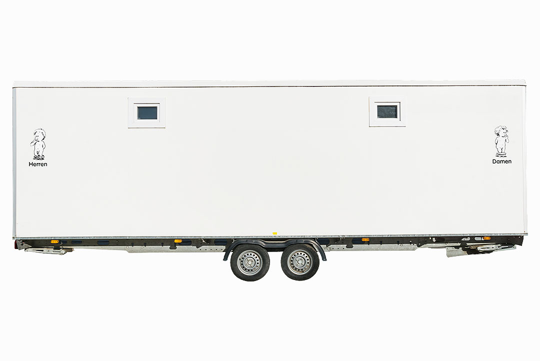 Dieser geräumige Toilettenwagen bietet noch mehr Freiheiten bei der individuellen Aufteilung. Für Ihre Veranstaltungen, ob nun Straßenfeste oder Hochzeiten im Freien, können Sie bei uns bestens ausgestattete Toilettenwagen mit getrennten Bereichen mieten. Diese Sanitäranlagen sind die komfortable Alternative und ersetzt gleich mehrere normale Toiletten-Kabinen.